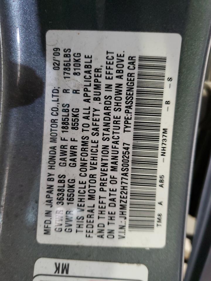 2010 HONDA INSIGHT - JHMZE2H77AS002547, цвет - Серый, 1.3, Гибрид, из США