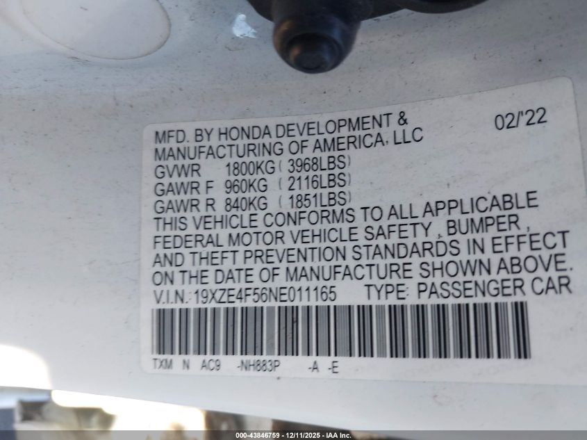 2022 HONDA INSIGHT - 19XZE4F56NE011165, цвет - Белый, 1.5, Гибрид, Передний привод из США