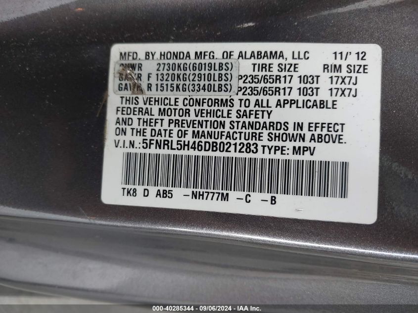 Цвет СерыйЦилиндры 6Привод Передний приводVIN 5FNRL5H46DB021283Состояние Заводится и едет (проверено)Повреждения Передняя или задняя