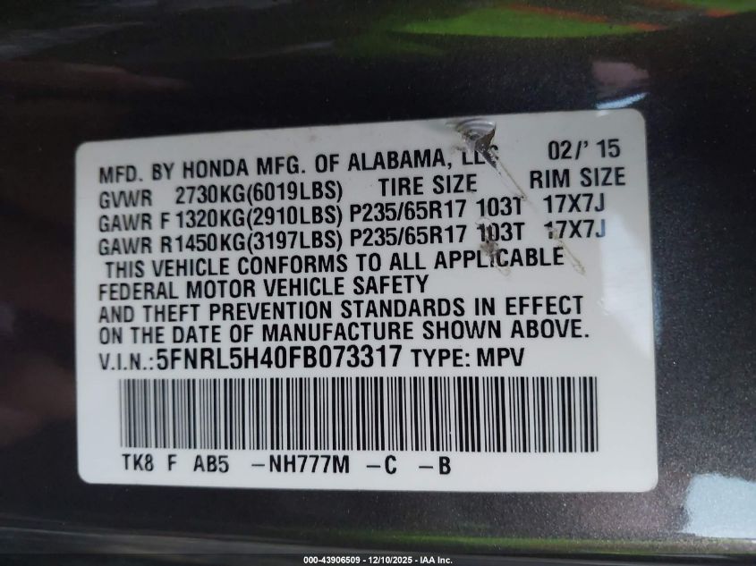 Цвет СерыйЦилиндры 6Привод Передний приводVIN 5FNRL5H40FB073317Состояние Заводится и едет (проверено)Повреждения Неизвестно