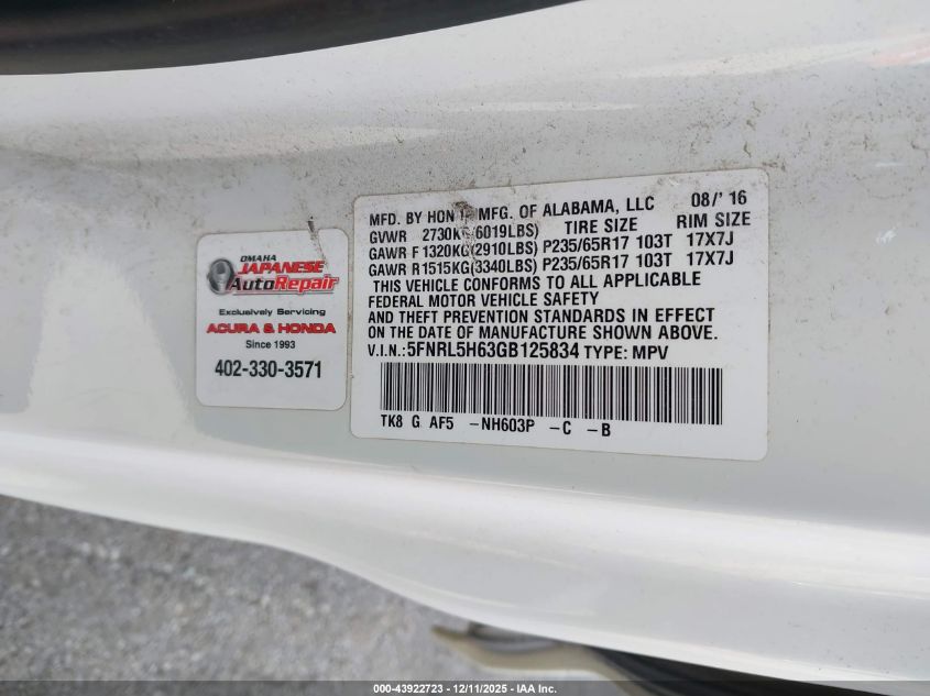 Цвет БелыйЦилиндры 6Привод Передний приводVIN 5FNRL5H63GB125834Состояние Заводится и едет (проверено)Повреждения Передняя или задняя