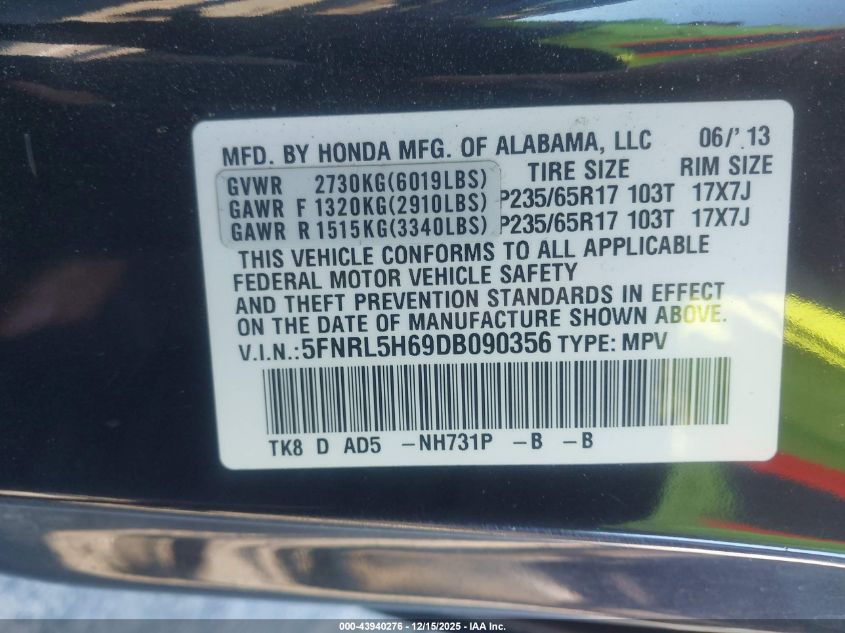 2013 HONDA ODYSSEY - 5FNRL5H69DB090356, цвет - Черный, 3.5, Бензин, Передний привод из США