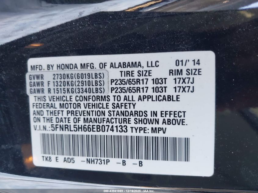 Цвет ЧерныйЦилиндры 6Привод Передний приводVIN 5FNRL5H66EB074133Состояние НеизвестноПовреждения Неизвестно