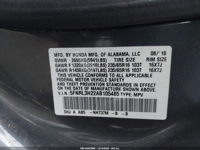 Цвет СерыйЦилиндры 6Привод Передний приводVIN 5FNRL3H22AB105485Состояние Заводится и едет (проверено)Повреждения Передняя или задняя