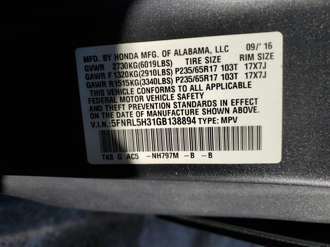 2016 HONDA ODYSSEY - 5FNRL5H31GB138894, цвет - Древесный уголь, 3.5, Бензин, из США