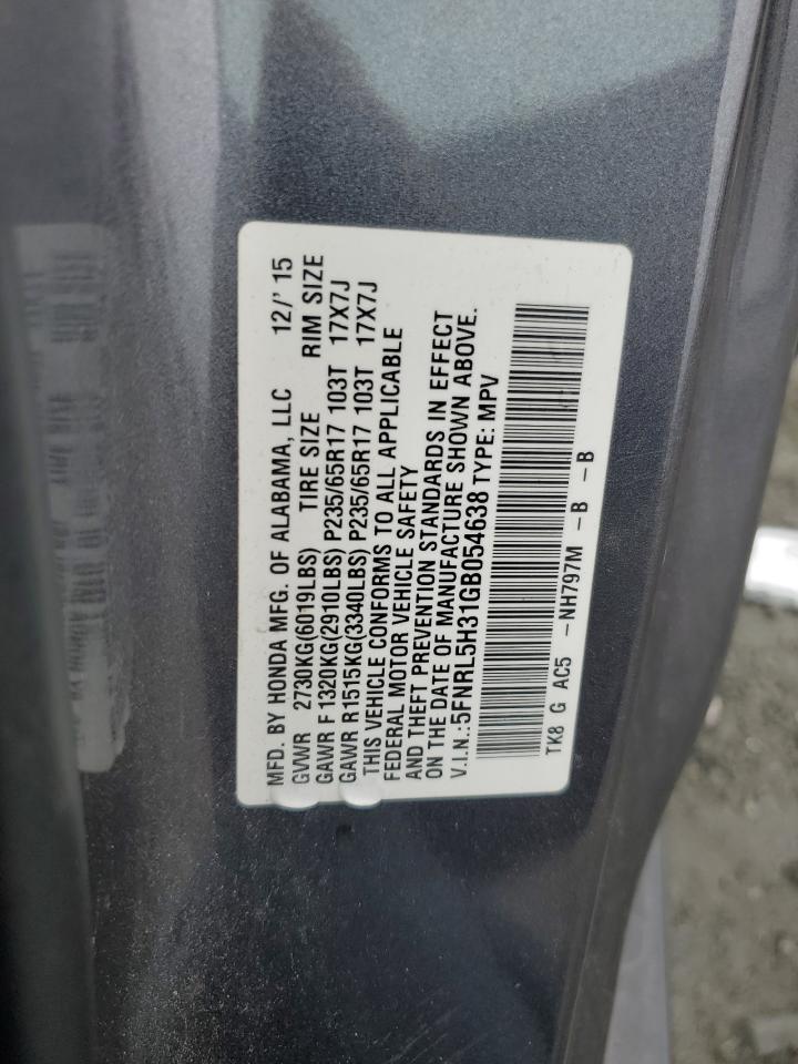 2016 HONDA ODYSSEY - 5FNRL5H31GB054638, цвет - Серый, 3.5, Бензин, из США
