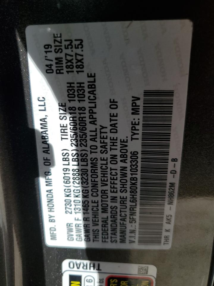 2019 HONDA ODYSSEY - 5FNRL6H80KB103306, цвет - Серый, 3.5, Бензин, из США