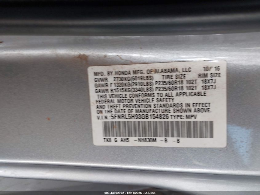 Цвет СеребряныйЦилиндры 6Привод Передний приводVIN 5FNRL5H93GB154826Состояние Заводится и едет (проверено)Повреждения Передняя или задняя