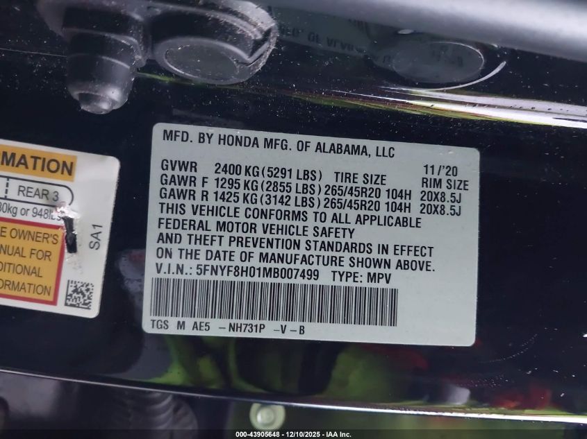 2021 HONDA PASSPORT - 5FNYF8H01MB007499, цвет - Черный, 3.5, Бензин, Полный привод из США