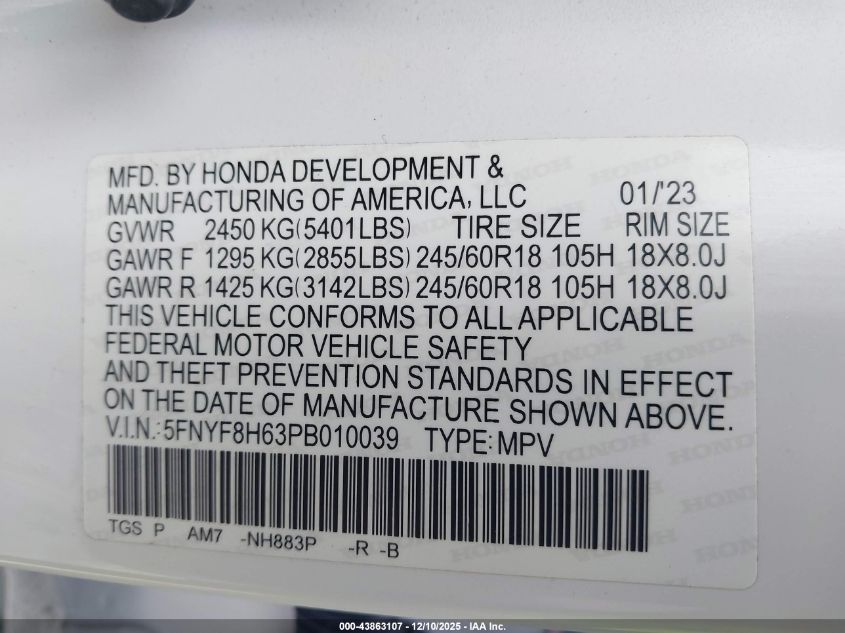 2023 HONDA PASSPORT - 5FNYF8H63PB010039, цвет - Белый, 3.5, Бензин, Полный привод из США