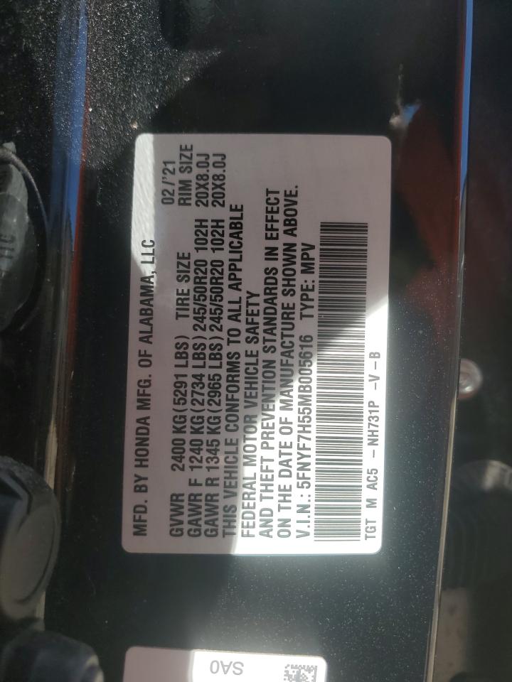 2021 HONDA PASSPORT - 5FNYF7H55MB005616, цвет - Черный, 3.5, Бензин, из США
