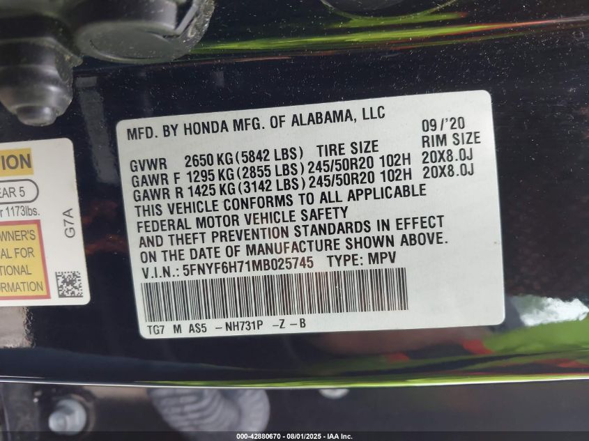 2021 HONDA PILOT - 5FNYF6H71MB025745, цвет - Черный, 3.5, Бензин, Полный привод из США