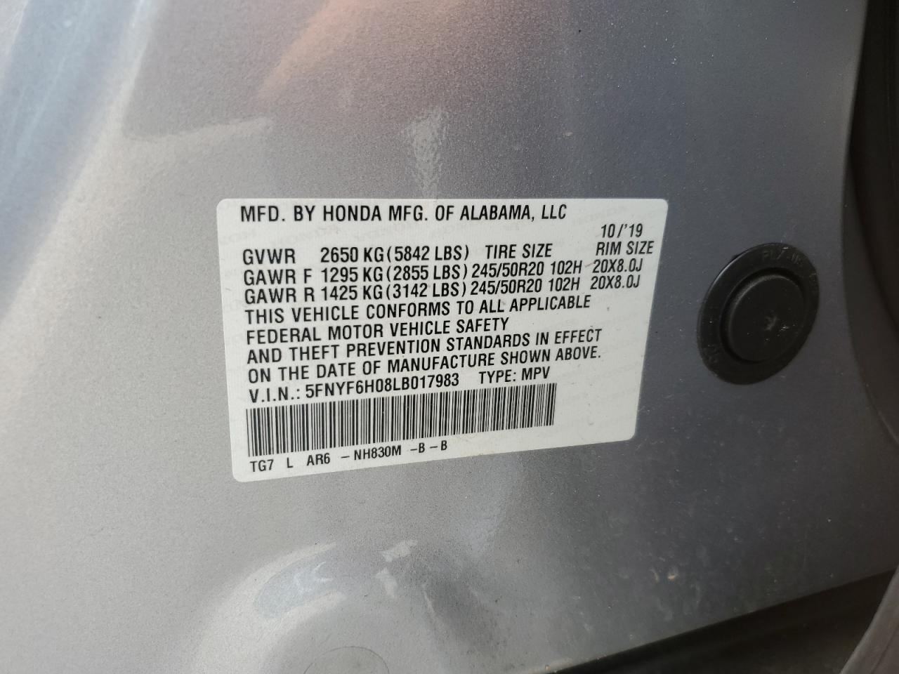 Цвет СеребряныйЦилиндры 6Привод Полный приводVIN 5FNYF6H08LB017983Состояние Заводится и едет (проверено)Повреждения Передняя или задняяДата аукциона 2025-10-09