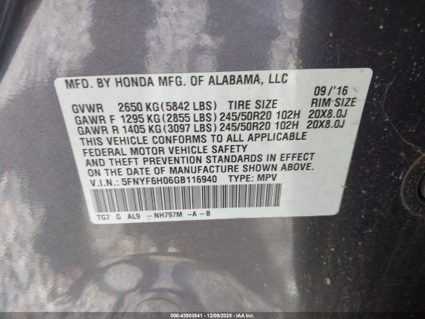 2016 HONDA PILOT EXL
