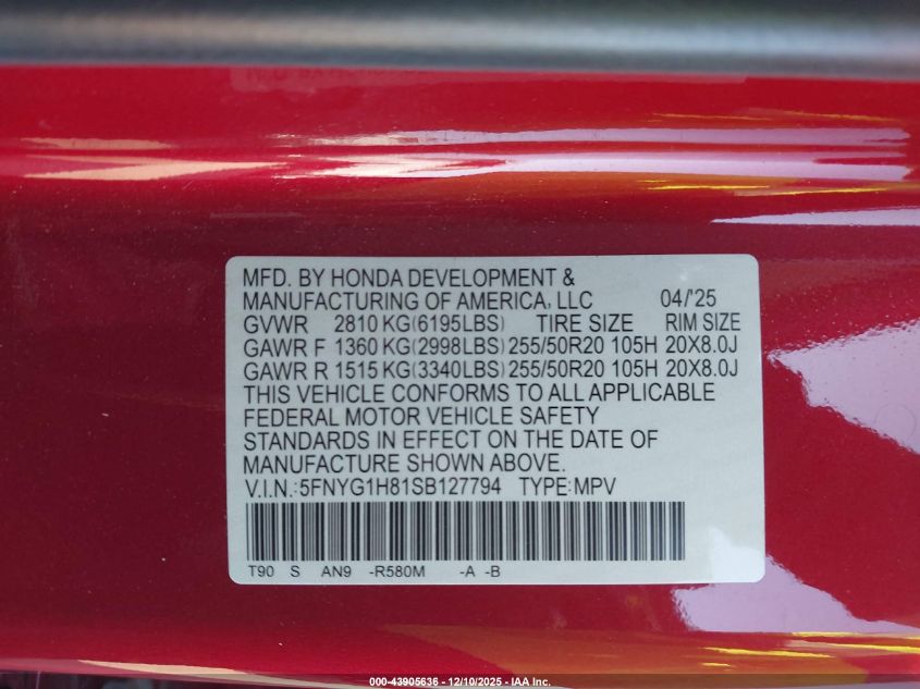 2025 HONDA PILOT - 5FNYG1H81SB127794, цвет - Красный, 3.5, Бензин, Полный привод из США
