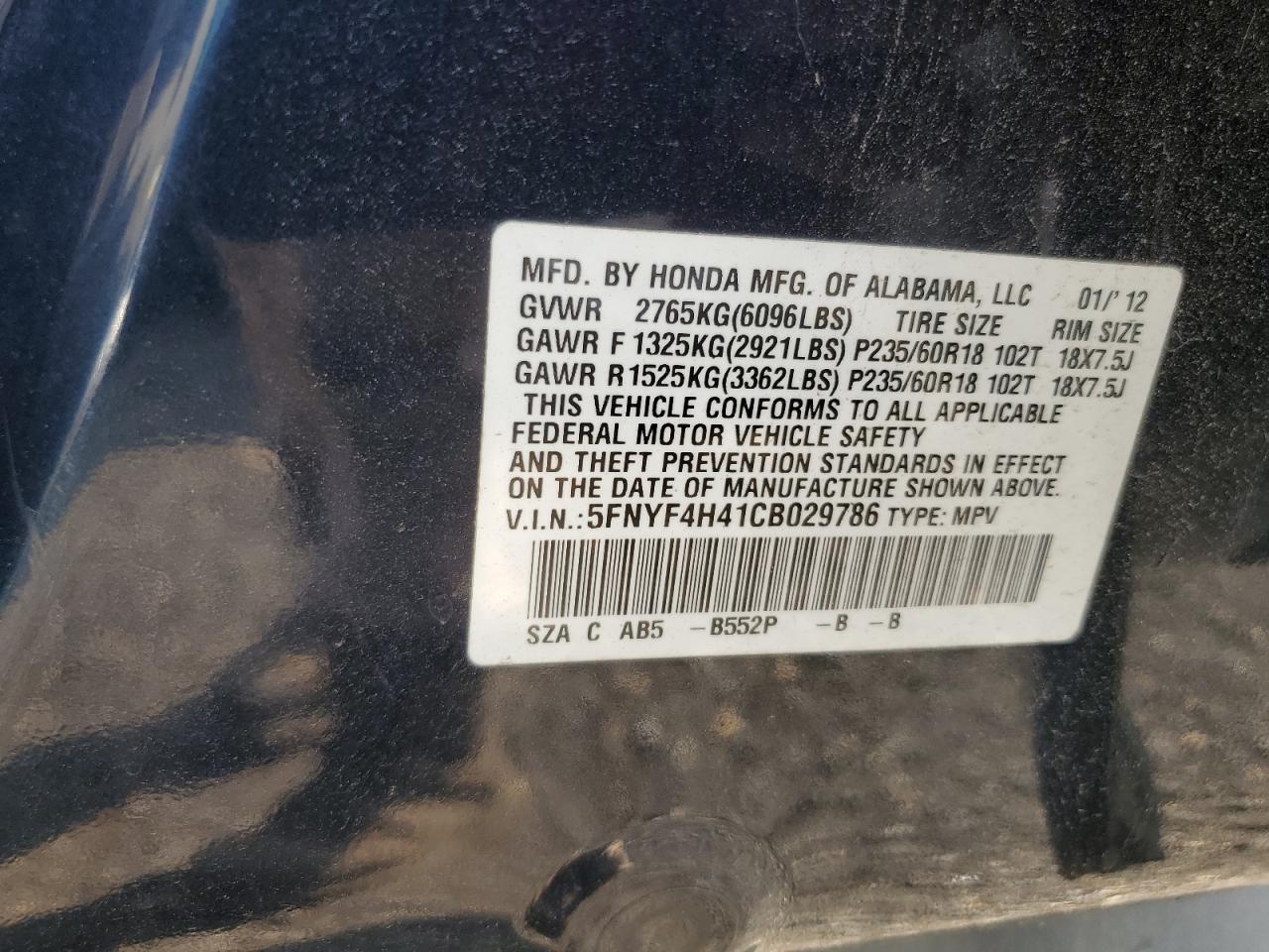 2012 HONDA PILOT - 5FNYF4H41CB029786, цвет - Синий, 3.5, Бензин, Полный привод из США