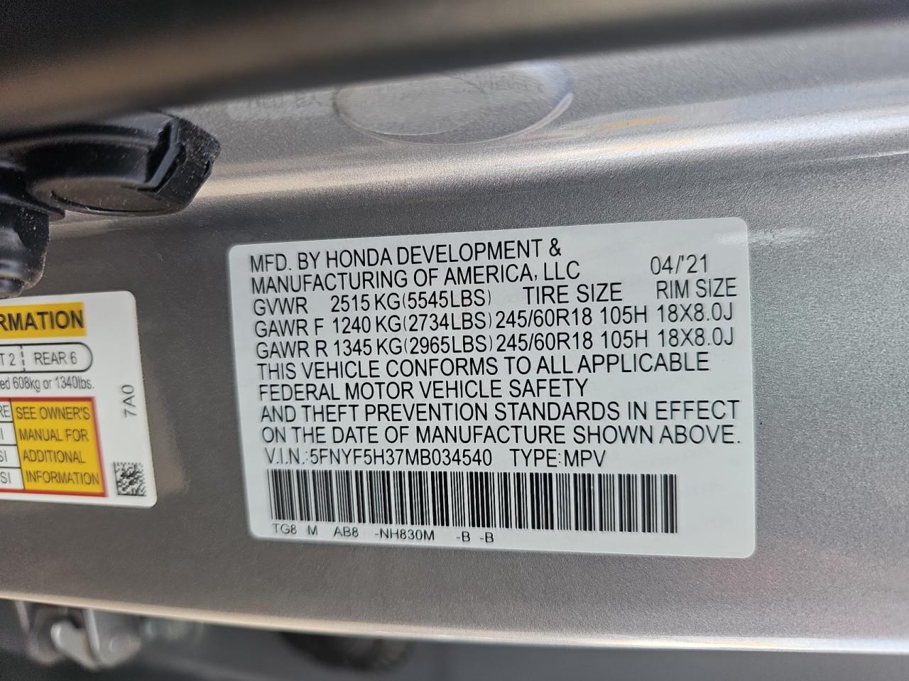 2021 HONDA PILOT - 5FNYF5H37MB034540, цвет - Серый, 3.5, Бензин, из США