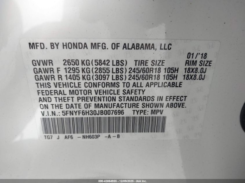 2018 HONDA PILOT EXL