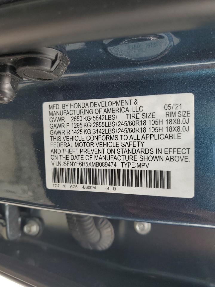 2021 HONDA PILOT - 5FNYF6H5XMB089474, цвет - Синий, 3.5, Бензин, Полный привод из США