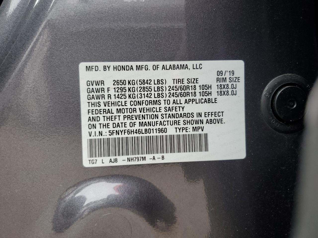 Цвет СерыйЦилиндры 6Привод Полный приводVIN 5FNYF6H46LB011960Состояние Заводится и едет (проверено)Повреждения Передняя или задняяДата аукциона 2025-10-10