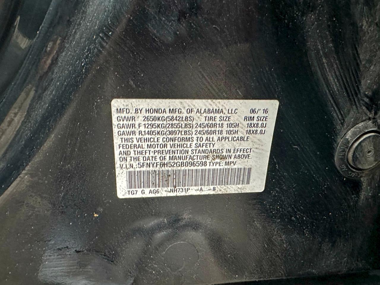 Цвет ЧерныйЦилиндры 6Привод Полный приводVIN 5FNYF6H52GB096598Состояние Заводится и едет (проверено)Повреждения НезначительныеДата аукциона 2025-12-16