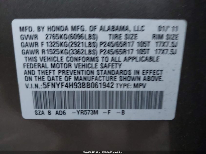 Цвет ЗагарЦилиндры 6Привод Полный приводVIN 5FNYF4H93BB061942Состояние Заводится и едет (проверено)Повреждения Передняя или задняя