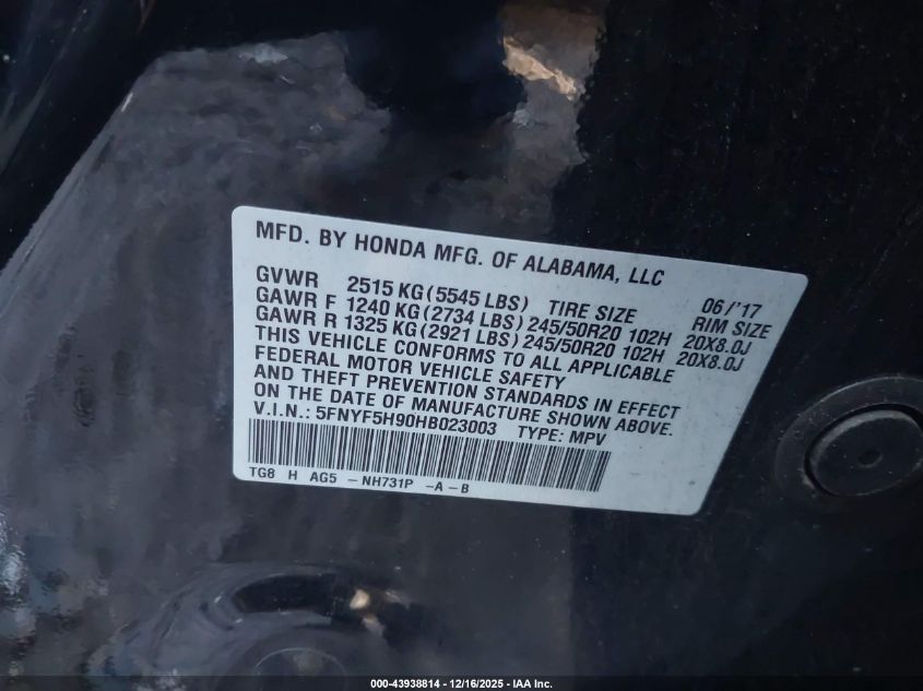 2017 HONDA PILOT - 5FNYF5H90HB023003, цвет - Черный, 3.5, Бензин, Передний привод из США