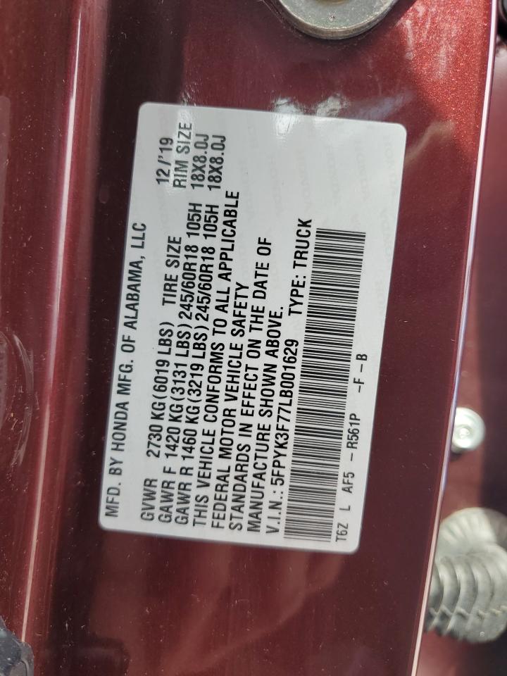 2020 HONDA RIDGELINE - 5FPYK3F77LB001629, цвет - Бургундия, 3.5, Бензин, Полный привод из США