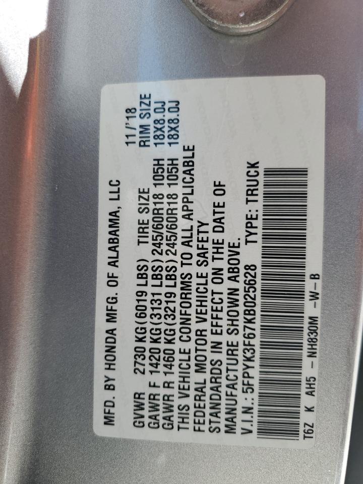 2019 HONDA RIDGELINE - 5FPYK3F67KB025628, цвет - Серебряный, 3.5, Бензин, Полный привод из США