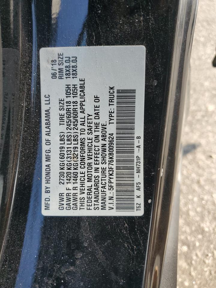 2019 HONDA RIDGELINE - 5FPYK3F76KB009624, цвет - Черный, 3.5, Бензин, Полный привод из США