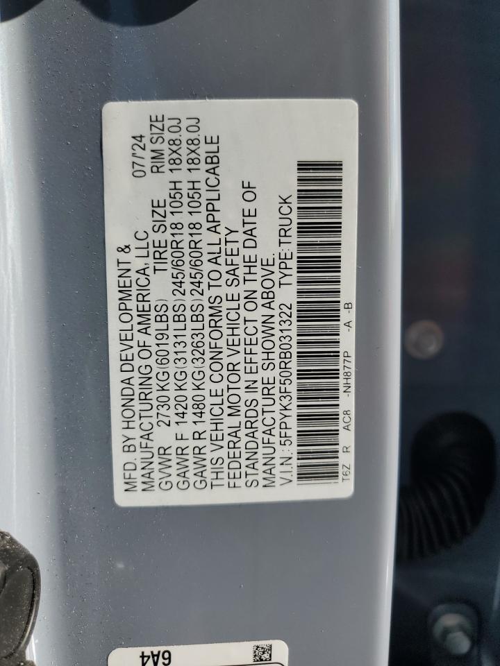 2024 HONDA RIDGELINE - 5FPYK3F50RB031322, цвет - Синий, 3.5, Бензин, Полный привод из США