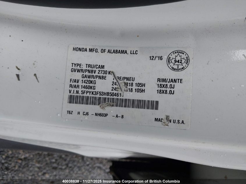 2017 HONDA RIDGELINE - 5FPYK3F53HB504614, цвет - Белый, , Бензин, Полный привод из США