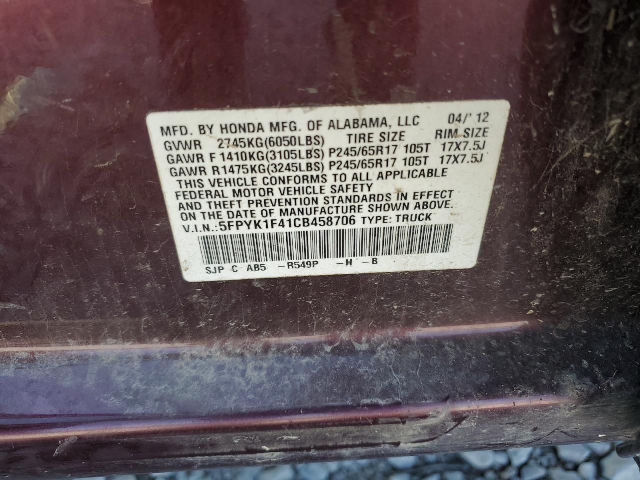 2012 HONDA RIDGELINE - 5FPYK1F41CB458706, цвет - Красный, 3.5, Бензин, 4x4 с передним приводом из США