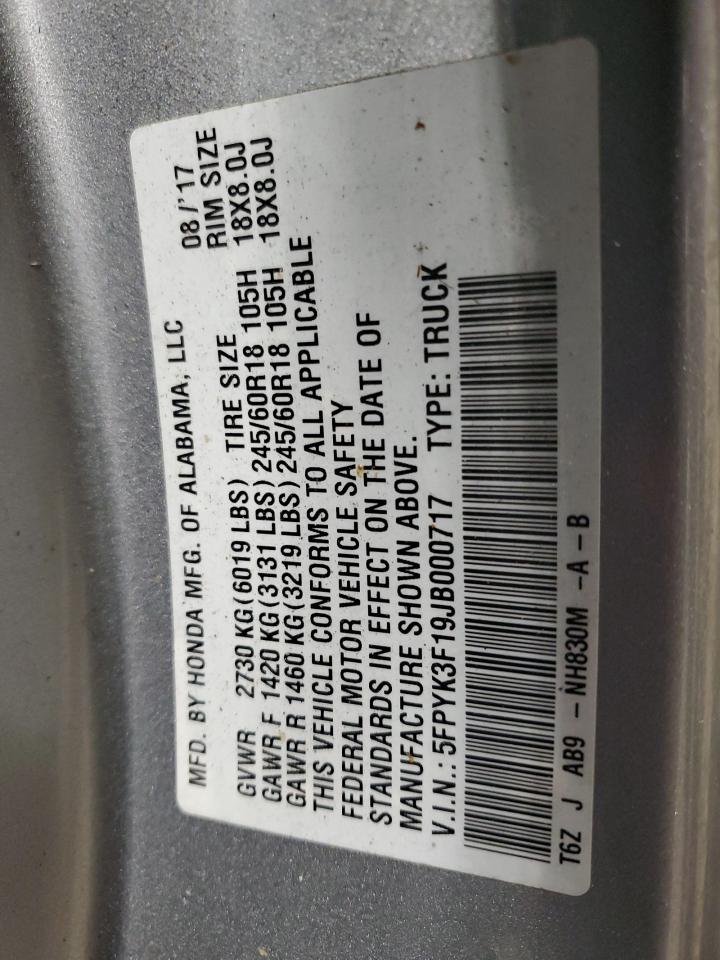 2018 HONDA RIDGELINE - 5FPYK3F19JB000717, цвет - Серебряный, 3.5, Бензин, Полный привод из США