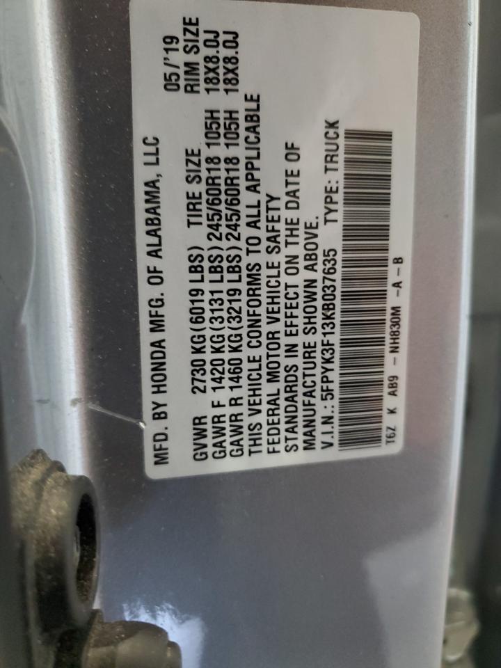 2019 HONDA RIDGELINE - 5FPYK3F13KB037635, цвет - Серый, 3.5, Бензин, Полный привод из США