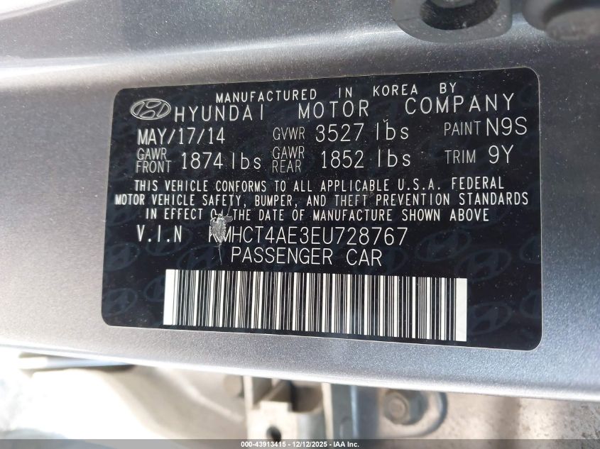 2014 HYUNDAI ACCENT - KMHCT4AE3EU728767, цвет - Серебряный, 1.6, Бензин, Передний привод из США