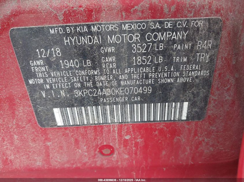 2019 HYUNDAI ACCENT - 3KPC24A30KE070499, цвет - Красный, 1.6, Бензин, Передний привод из США