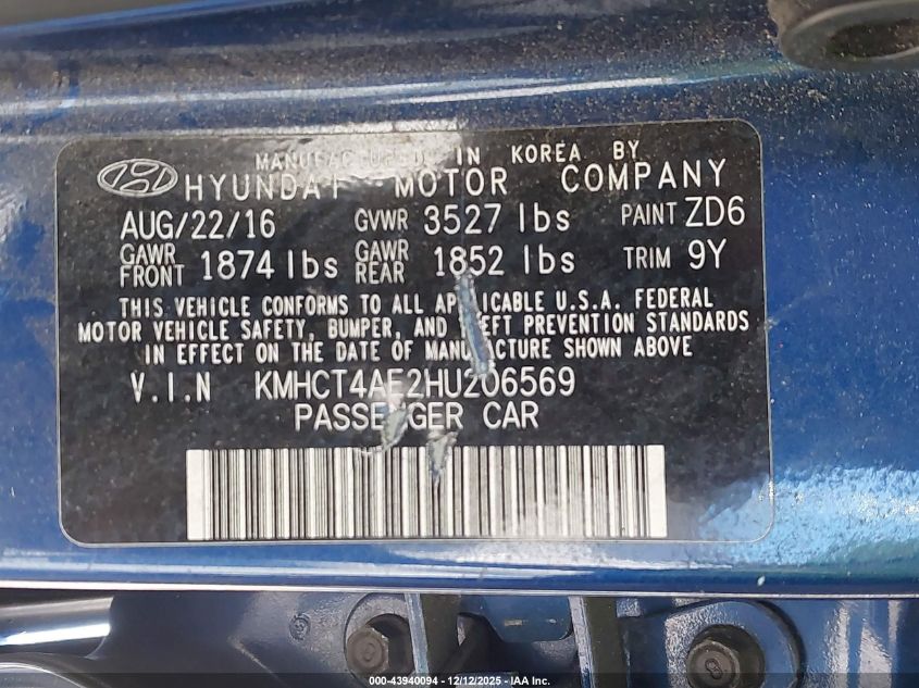 2017 HYUNDAI ACCENT - KMHCT4AE2HU206569, цвет - Синий, 1.6, Бензин, Передний привод из США
