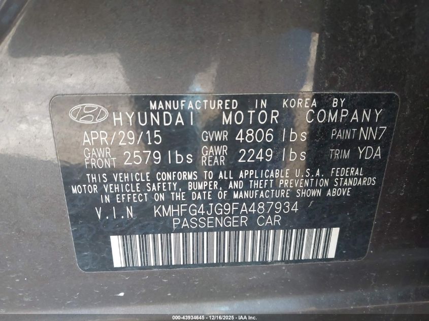 2015 HYUNDAI AZERA