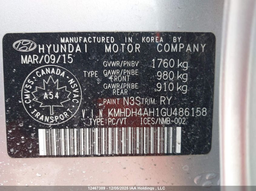 2016 HYUNDAI ELANTRA - KMHDH4AH1GU486158, цвет - Черный, , Бензин, Передний привод из США