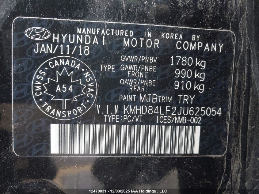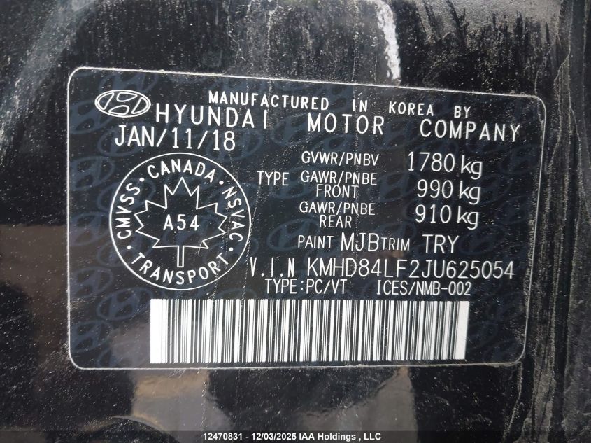Цвет ЧерныйЦилиндры 4Привод Передний приводVIN KMHD84LF2JU625054Состояние СтационарноПовреждения ПередняяДата аукциона 2025-12-17