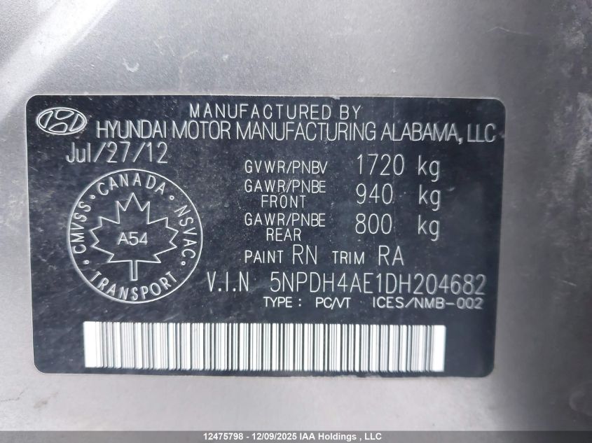 2013 HYUNDAI ELANTRA - 5NPDH4AE1DH204682, цвет - Серый, , Бензин, Передний привод из США