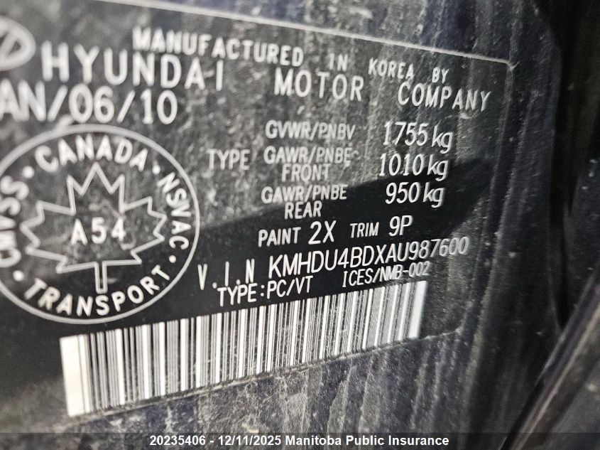 Цвет СинийЦилиндры 4Привод Передний приводVIN KMHDU4BDXAU987600Состояние СтационарноПовреждения НеизвестноДата аукциона 2025-12-17