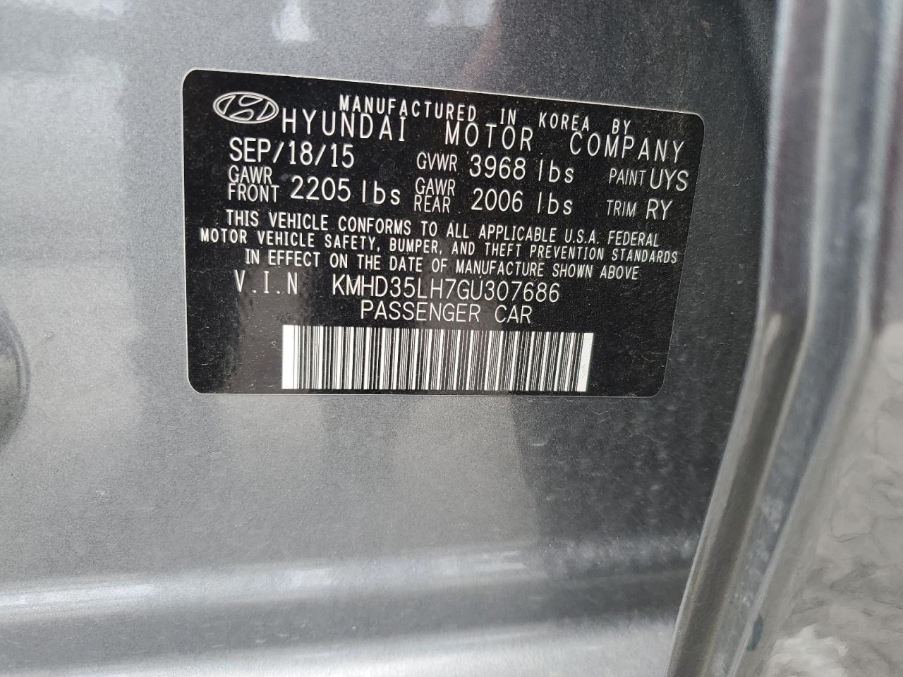 2016 HYUNDAI ELANTRA - KMHD35LH7GU307686, цвет - Серый, 2.0, Бензин, из США