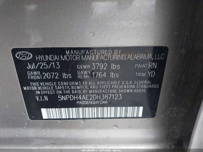 2013 HYUNDAI ELANTRA - 5NPDH4AE2DH387123, цвет - Бежевый, 1.8, Бензин, Передний привод из США