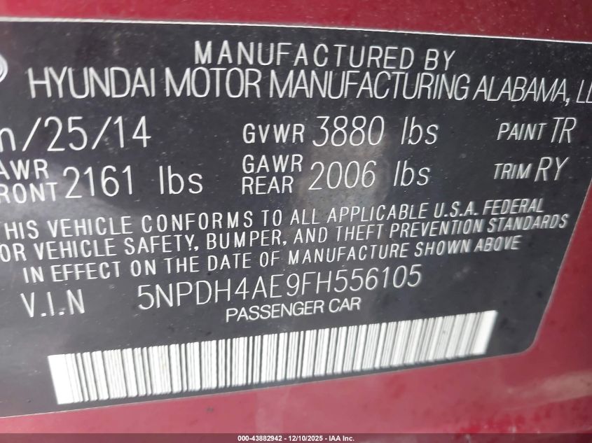 2015 HYUNDAI ELANTRA - 5NPDH4AE9FH556105, цвет - Красный, 1.8, Бензин, Передний привод из США