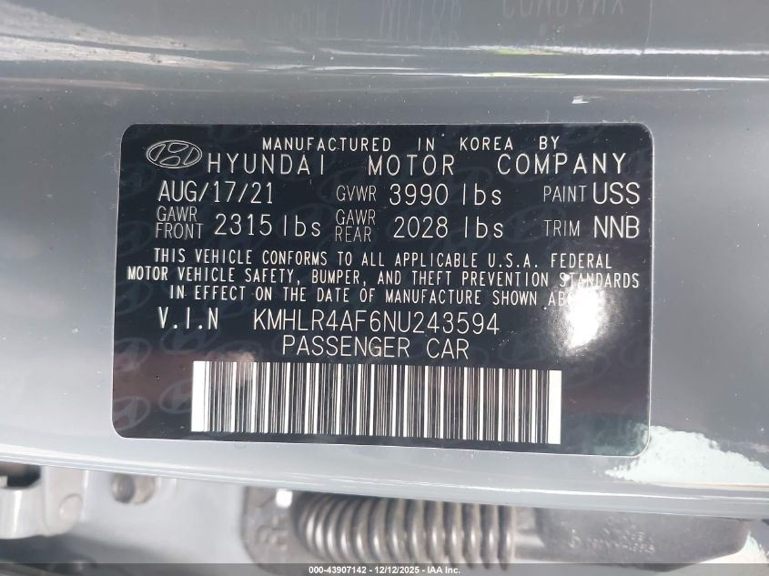 2022 HYUNDAI ELANTRA - KMHLR4AF6NU243594, цвет - Серый, 1.6, Бензин, Передний привод из США