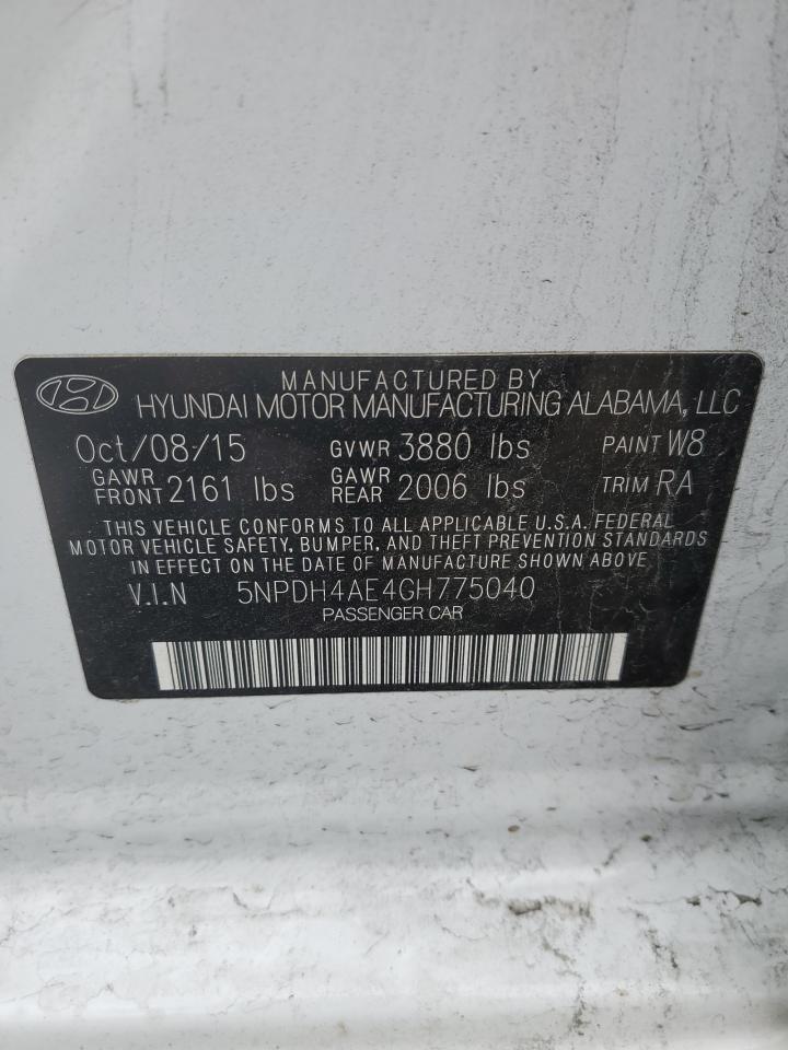 2016 HYUNDAI ELANTRA - 5NPDH4AE4GH775040, цвет - Белый, 1.8, Бензин, из США