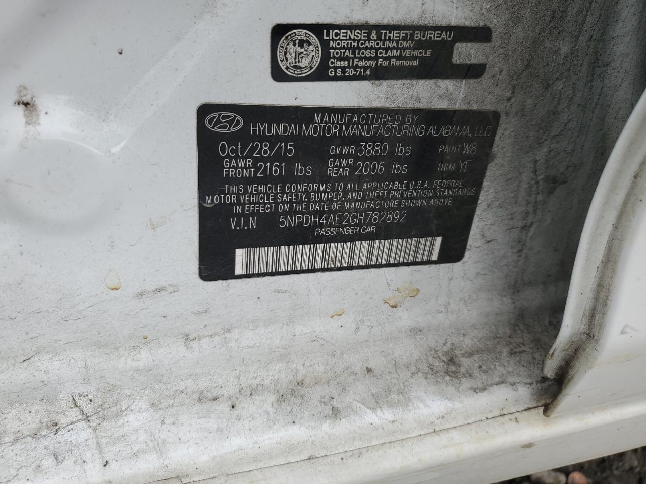 Цвет БелыйЦилиндры 4VIN 5NPDH4AE2GH782892Состояние ЗаводитсяПовреждения Передняя или задняя