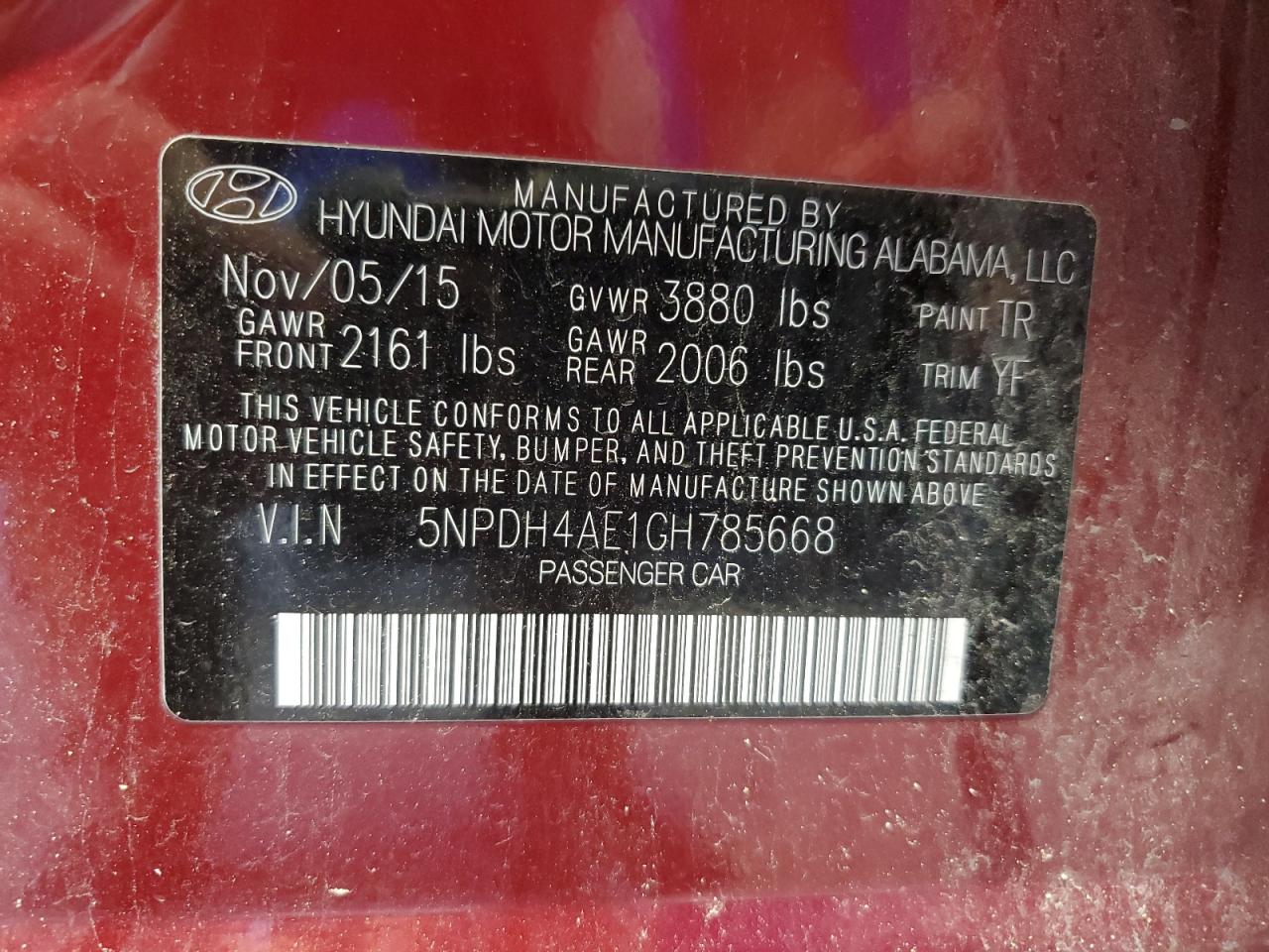 2016 HYUNDAI ELANTRA - 5NPDH4AE1GH785668, цвет - Бургундия, 1.8, Бензин, из США